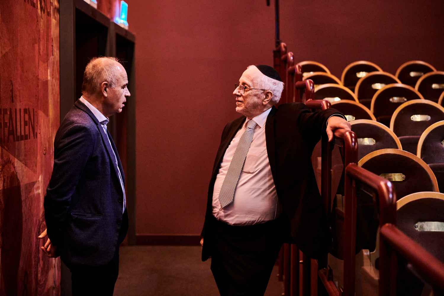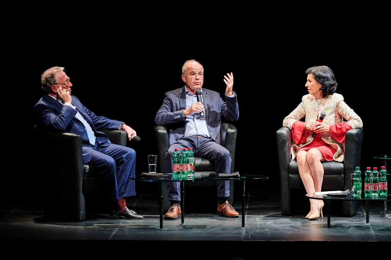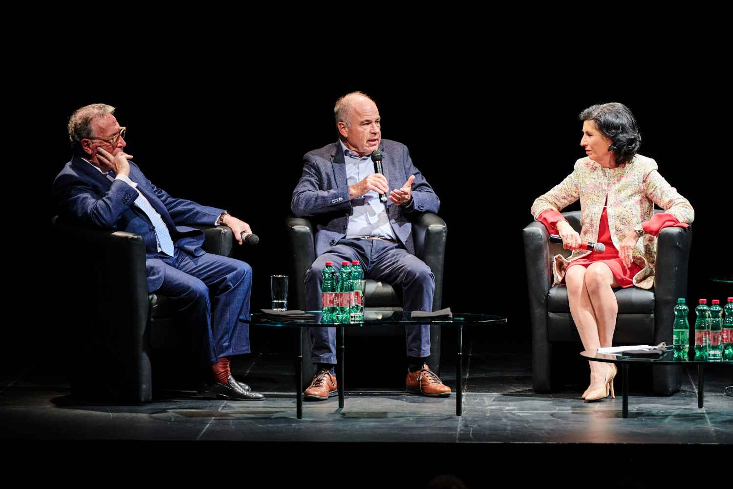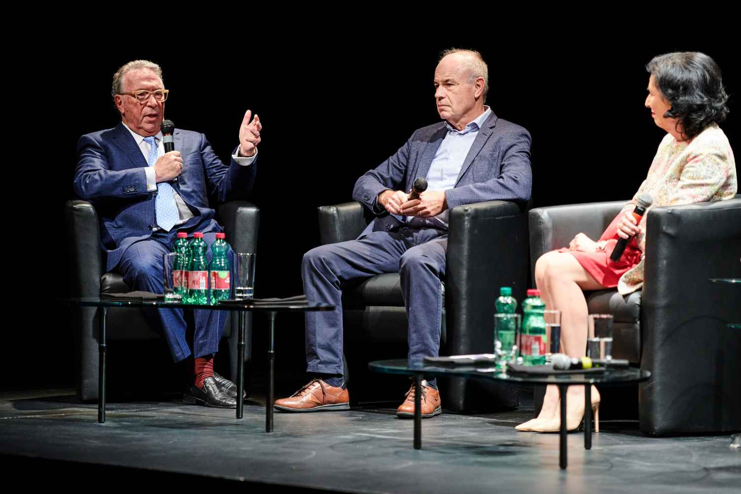 Auf dem Podium: Harry Bergmann, Ahmad Mansour, Doron Rabinovici, Esther Schapira, Robert Schindel, Ben Segenreich und Christian Ultsch. Moderation: Danielle Spera.