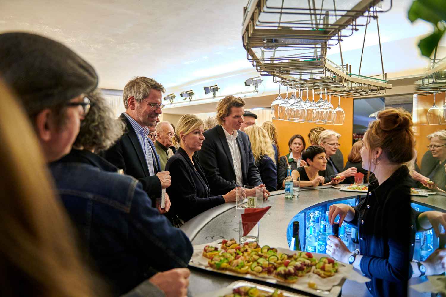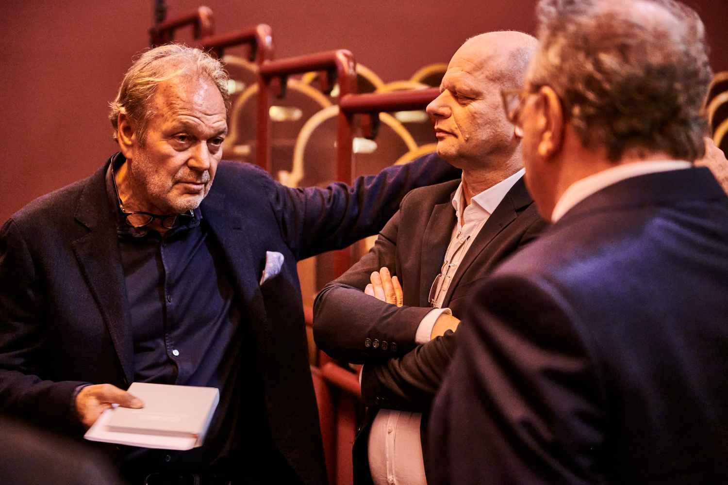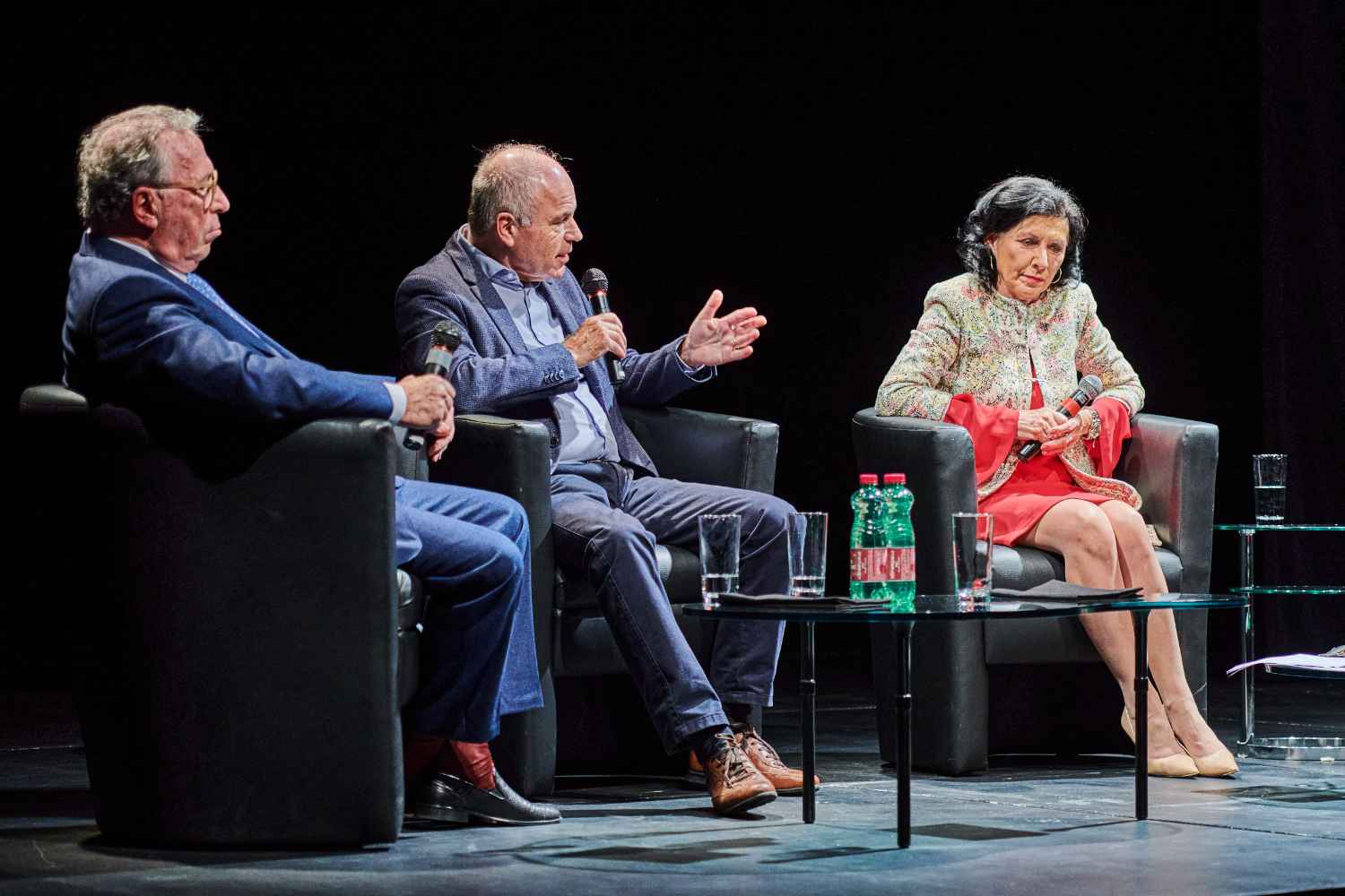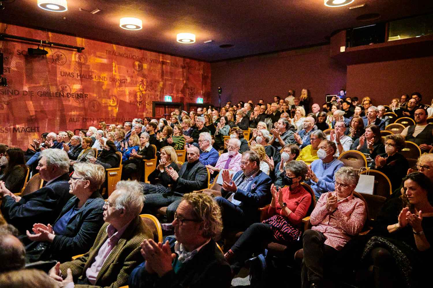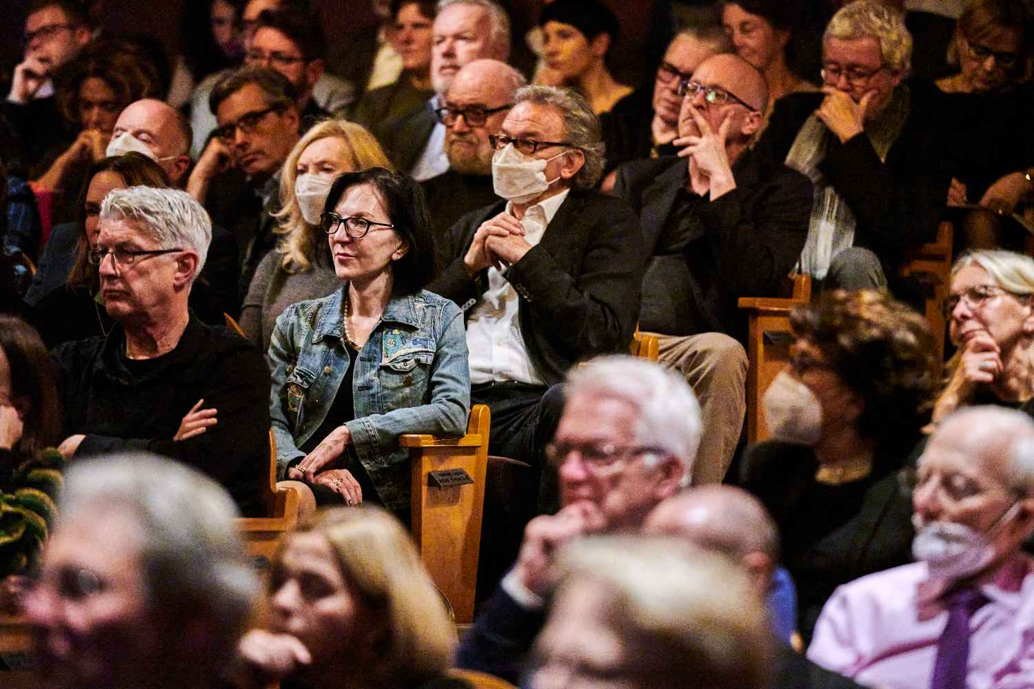 Auf dem Podium: Harry Bergmann, Ahmad Mansour, Doron Rabinovici, Esther Schapira, Robert Schindel, Ben Segenreich und Christian Ultsch. Moderation: Danielle Spera.