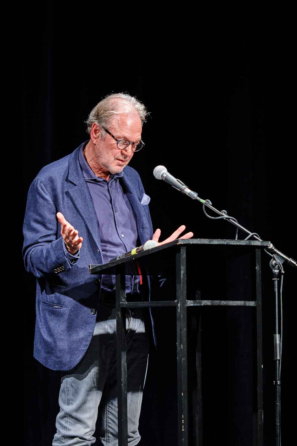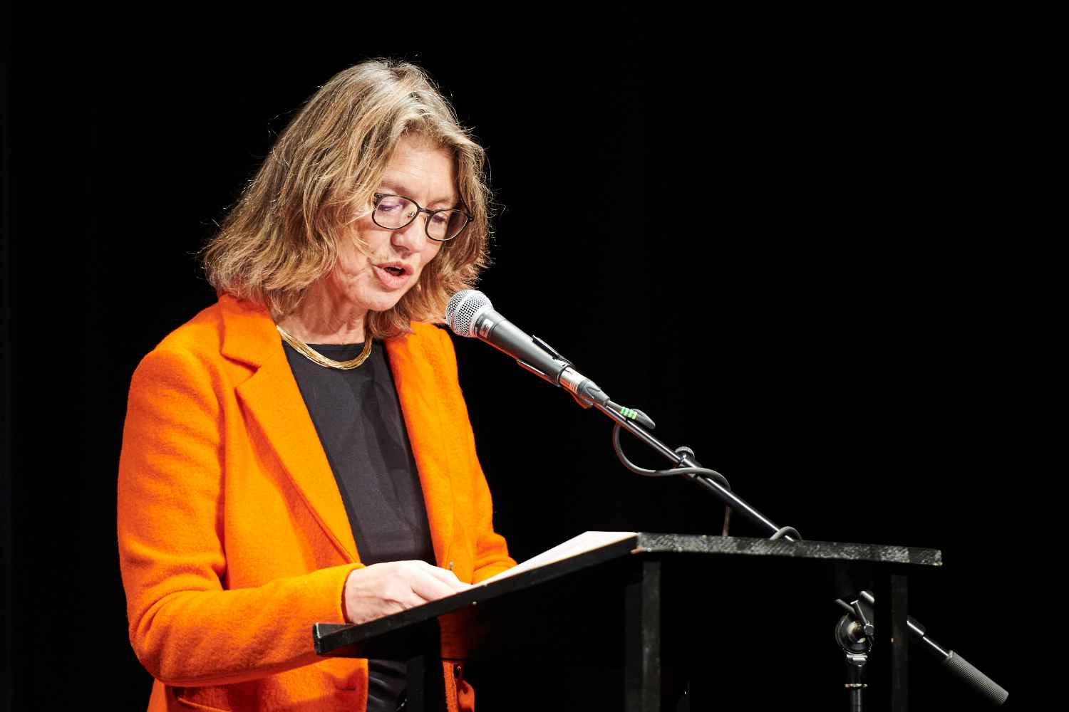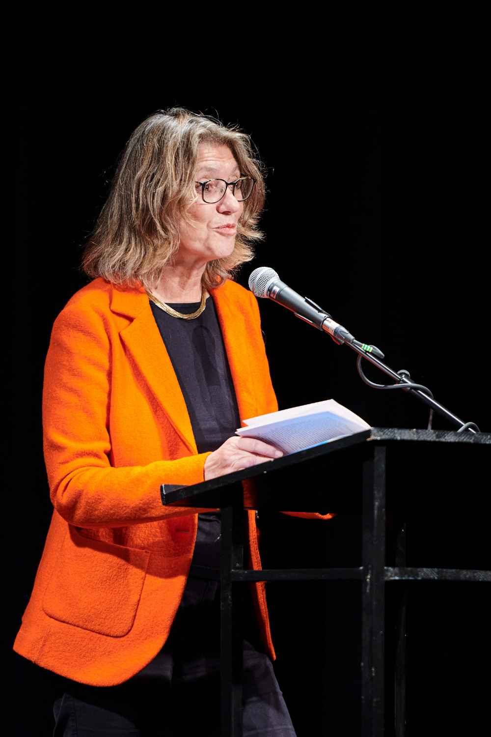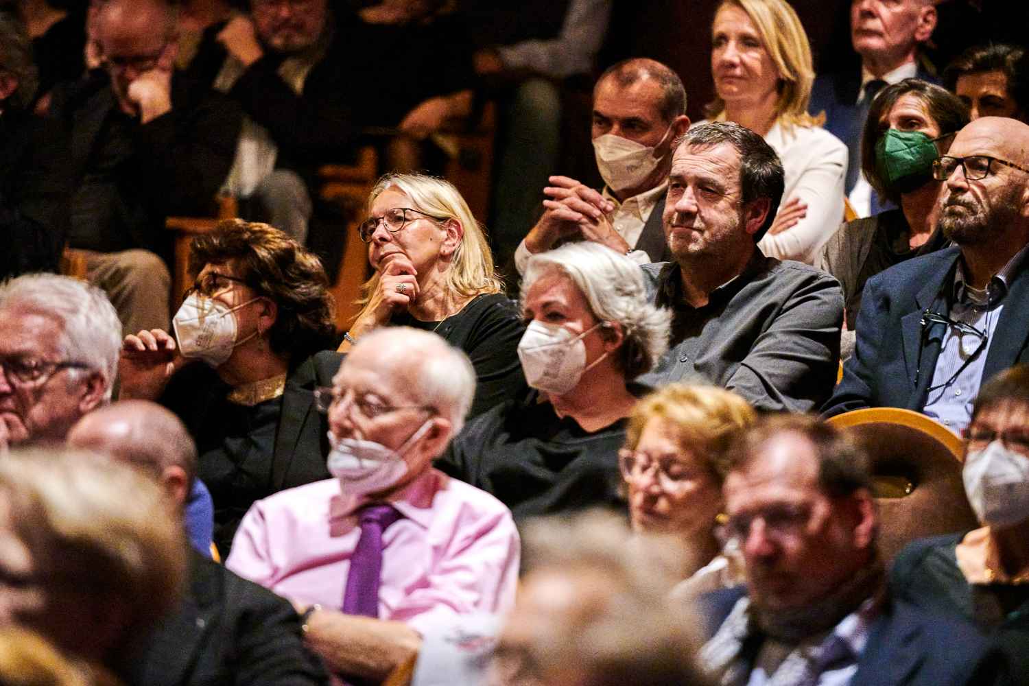Auf dem Podium: Harry Bergmann, Ahmad Mansour, Doron Rabinovici, Esther Schapira, Robert Schindel, Ben Segenreich und Christian Ultsch. Moderation: Danielle Spera.