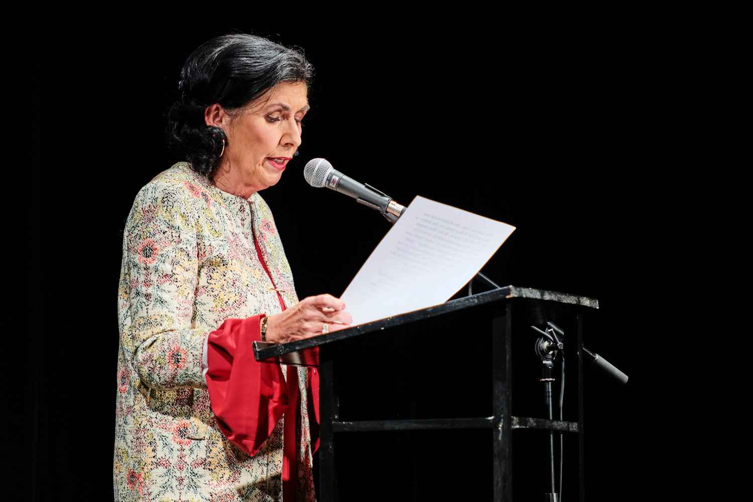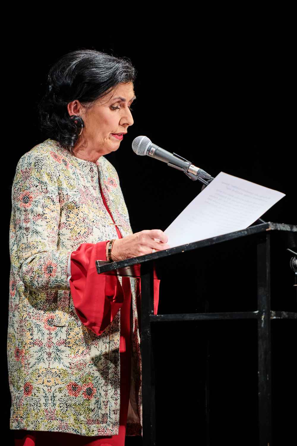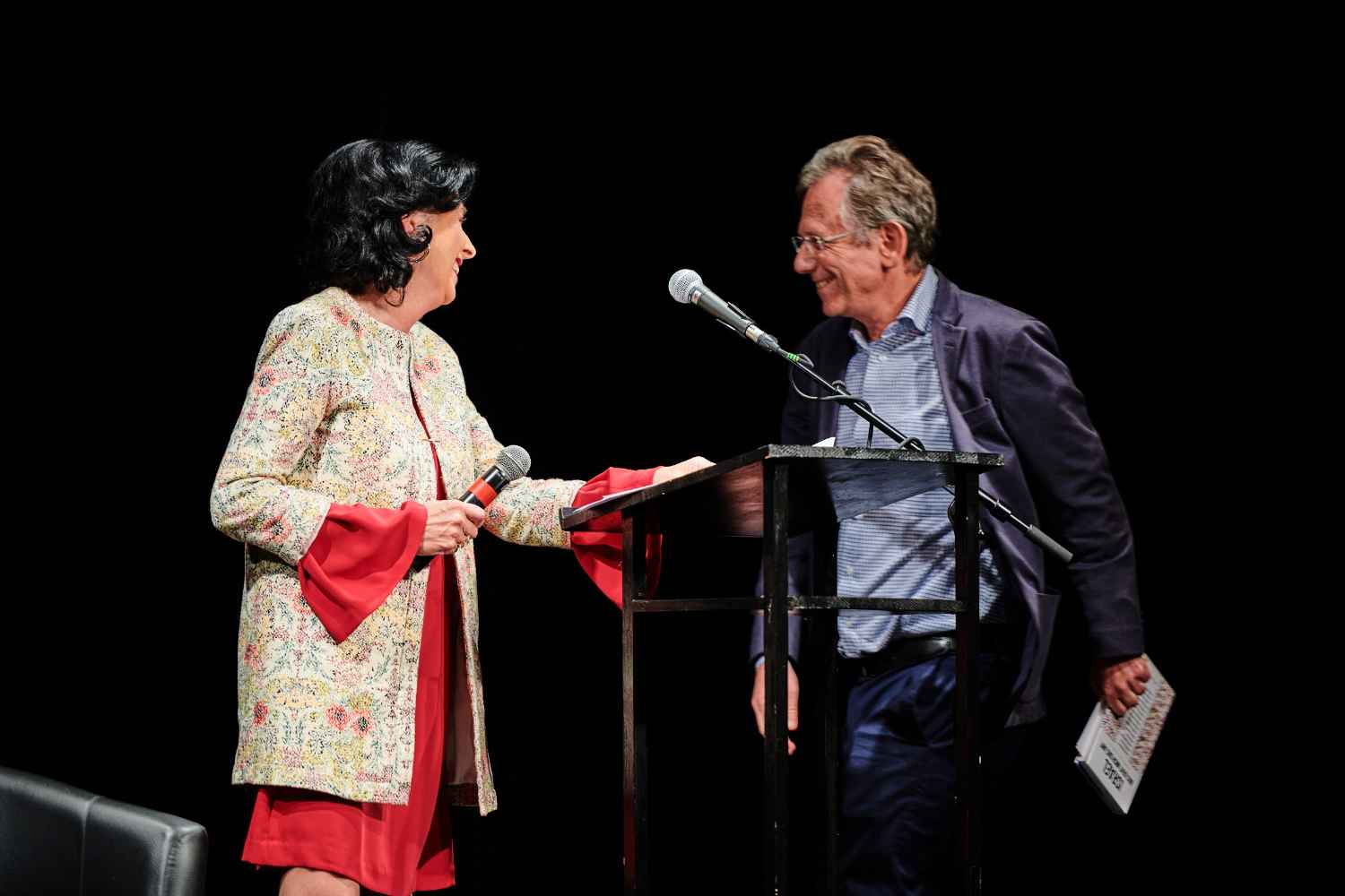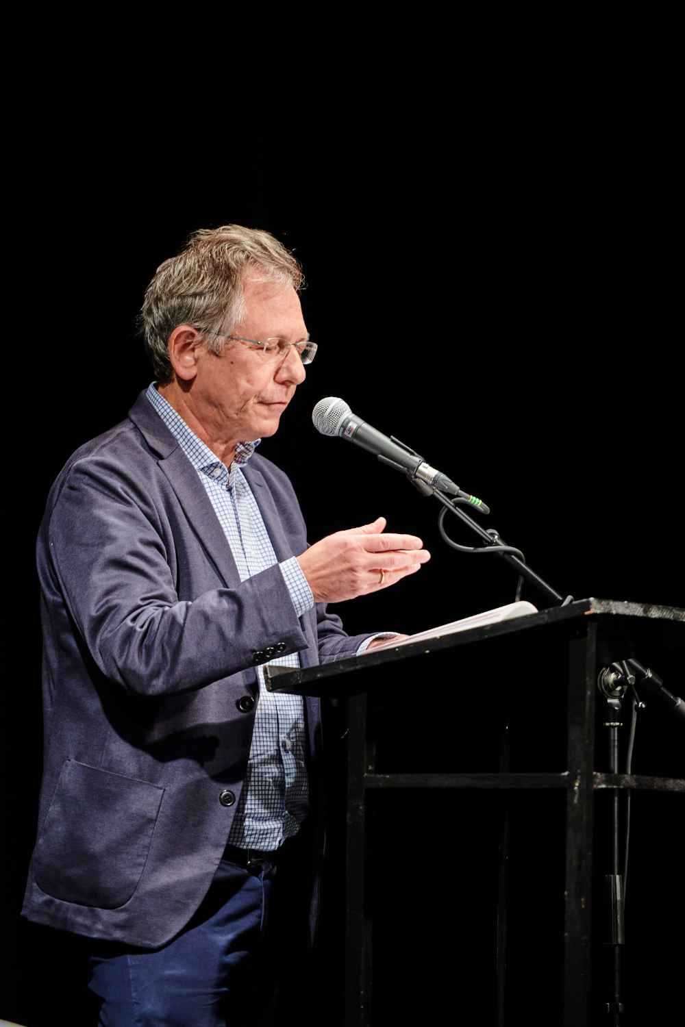 Auf dem Podium: Harry Bergmann, Ahmad Mansour, Doron Rabinovici, Esther Schapira, Robert Schindel, Ben Segenreich und Christian Ultsch. Moderation: Danielle Spera.