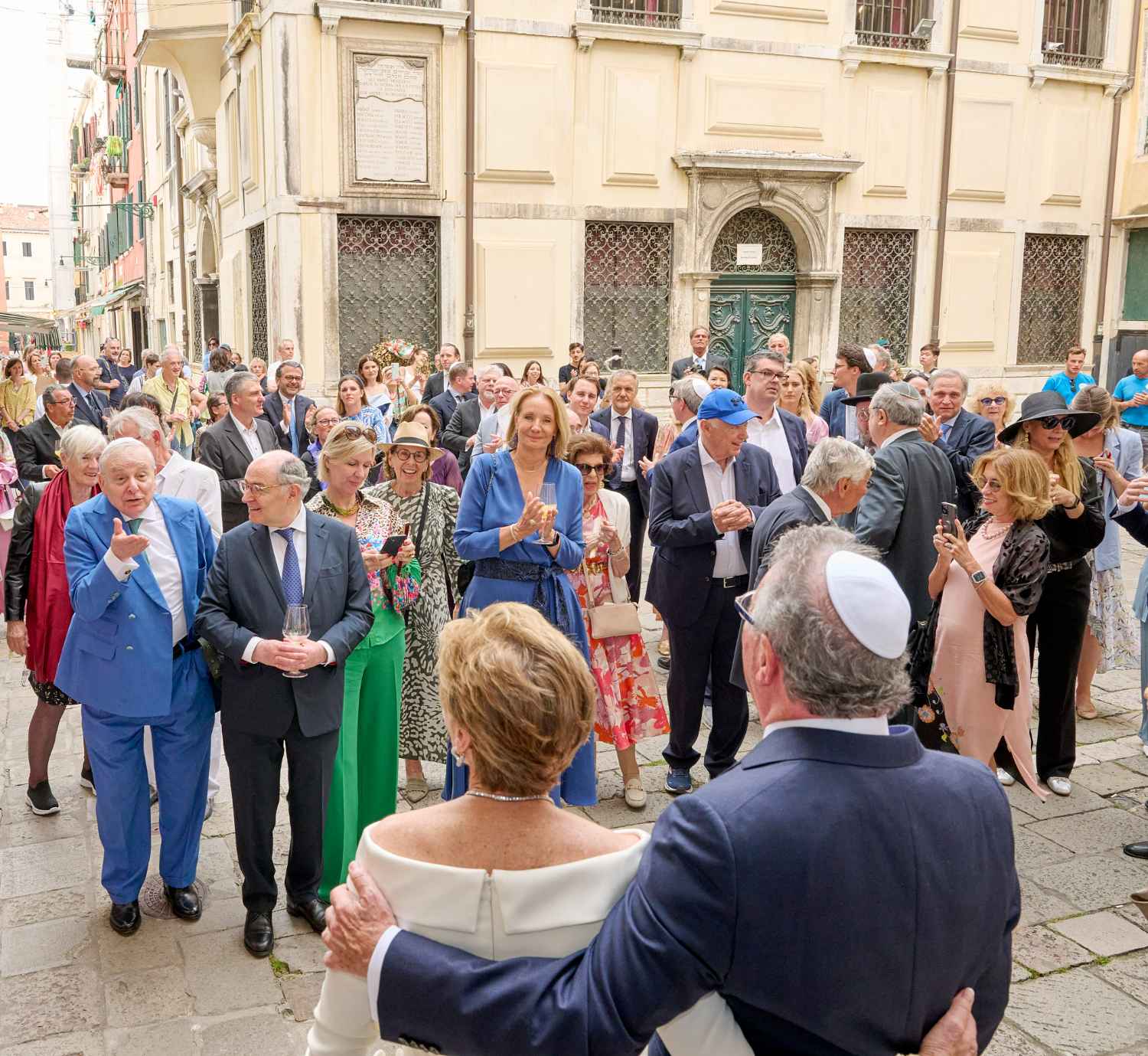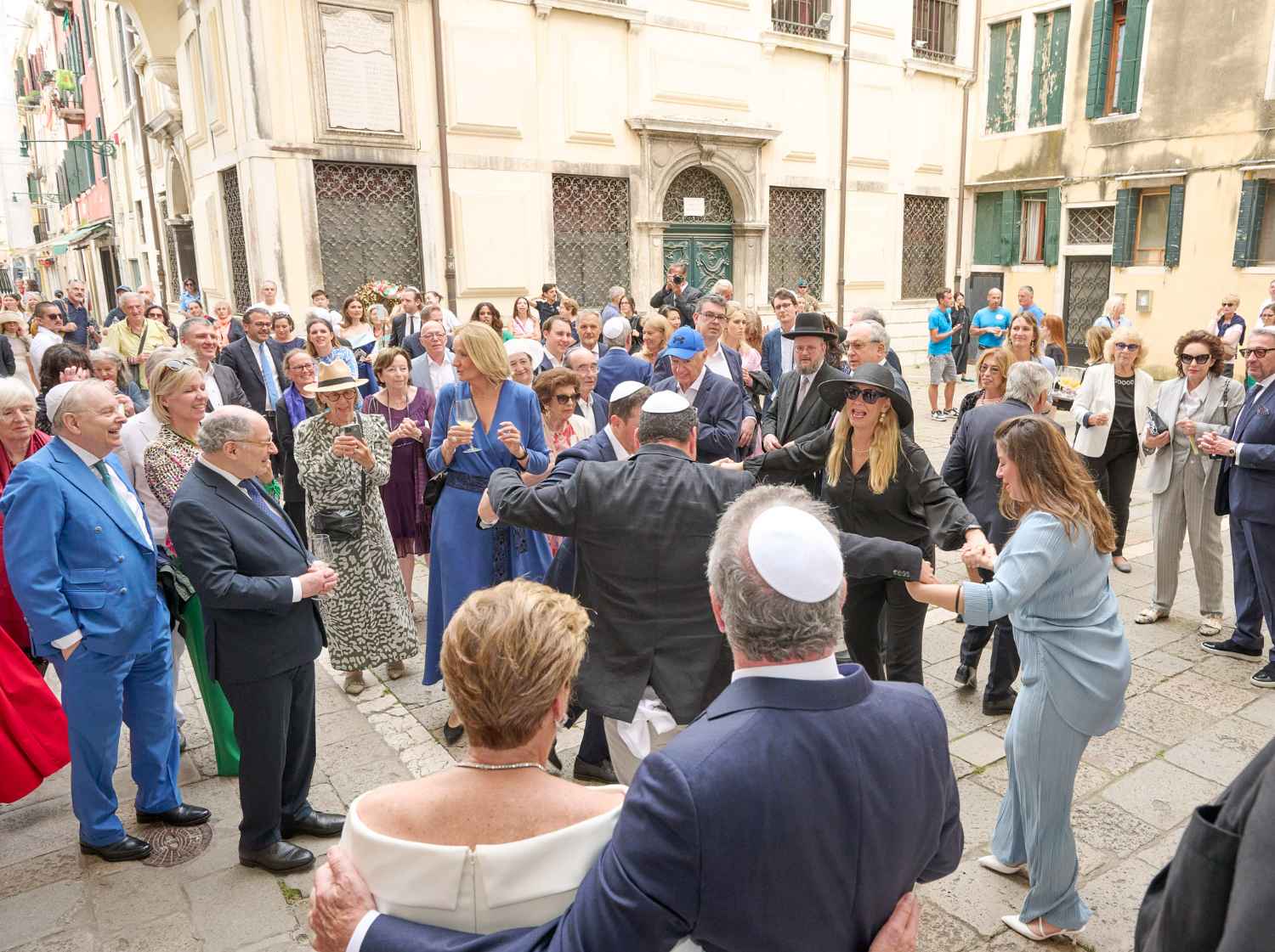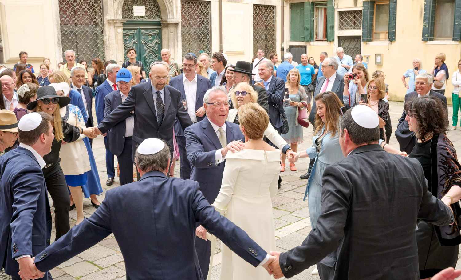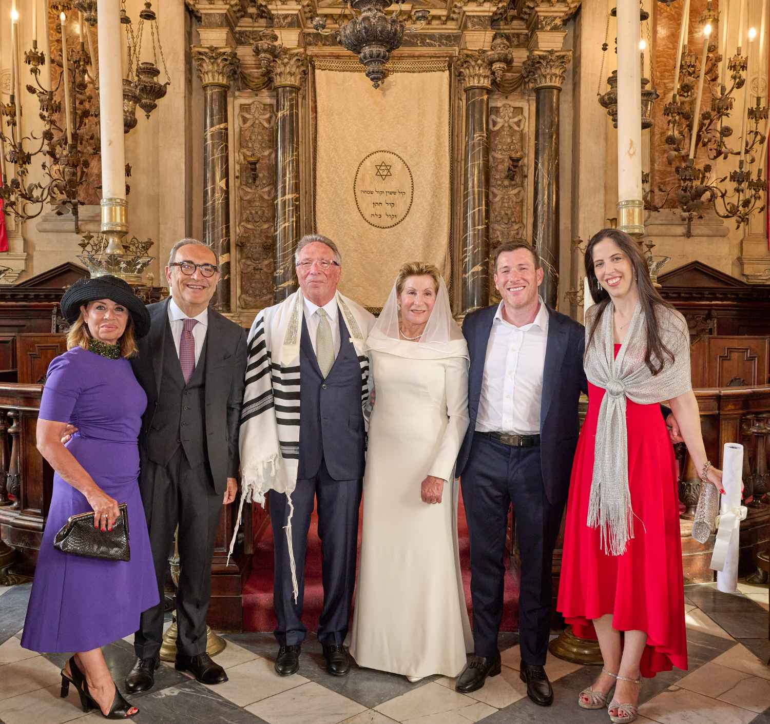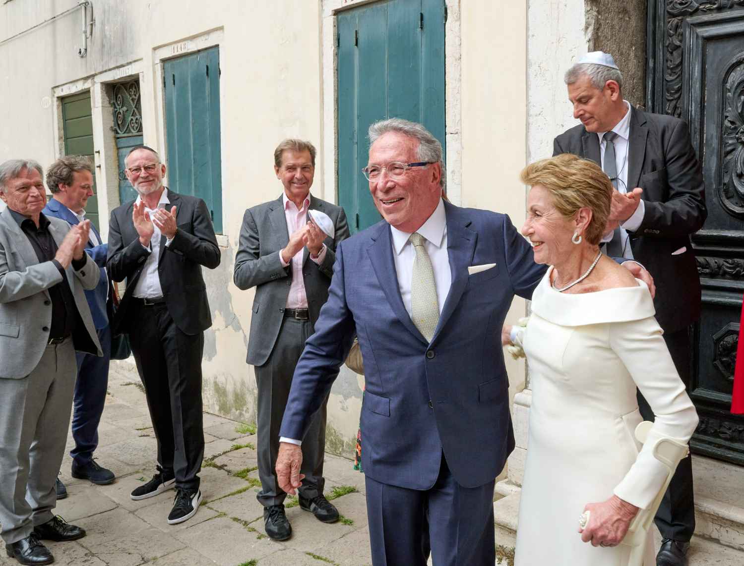Anita Ammersfeld und Erwin Javor wurden nach 33 Jahren standesamtlicher Ehe in der Spanischen Synagoge im Venediger Ghetto nun auch noch „richtig“ getraut. Das Fest danach fand im eleganten Sala Stucchi im Hotel Excelsior am Lido statt. Eine bunte wie hochkarätige und gut gelaunte Gästeschar aus Israel, Österreich, den USA, Kanada und der Schweiz feierte das Paar ausgelassen, fröhlich und herzlich bis in die frühen Morgenstunden.