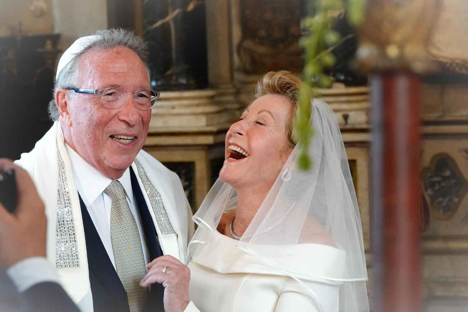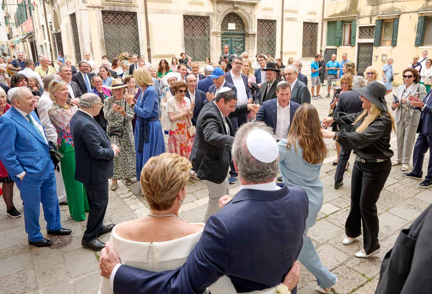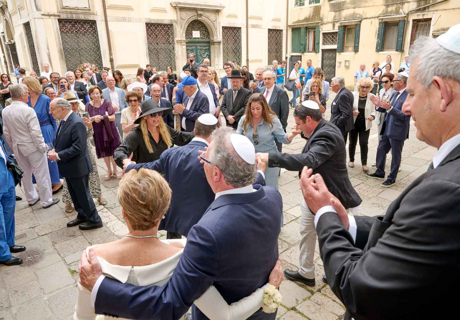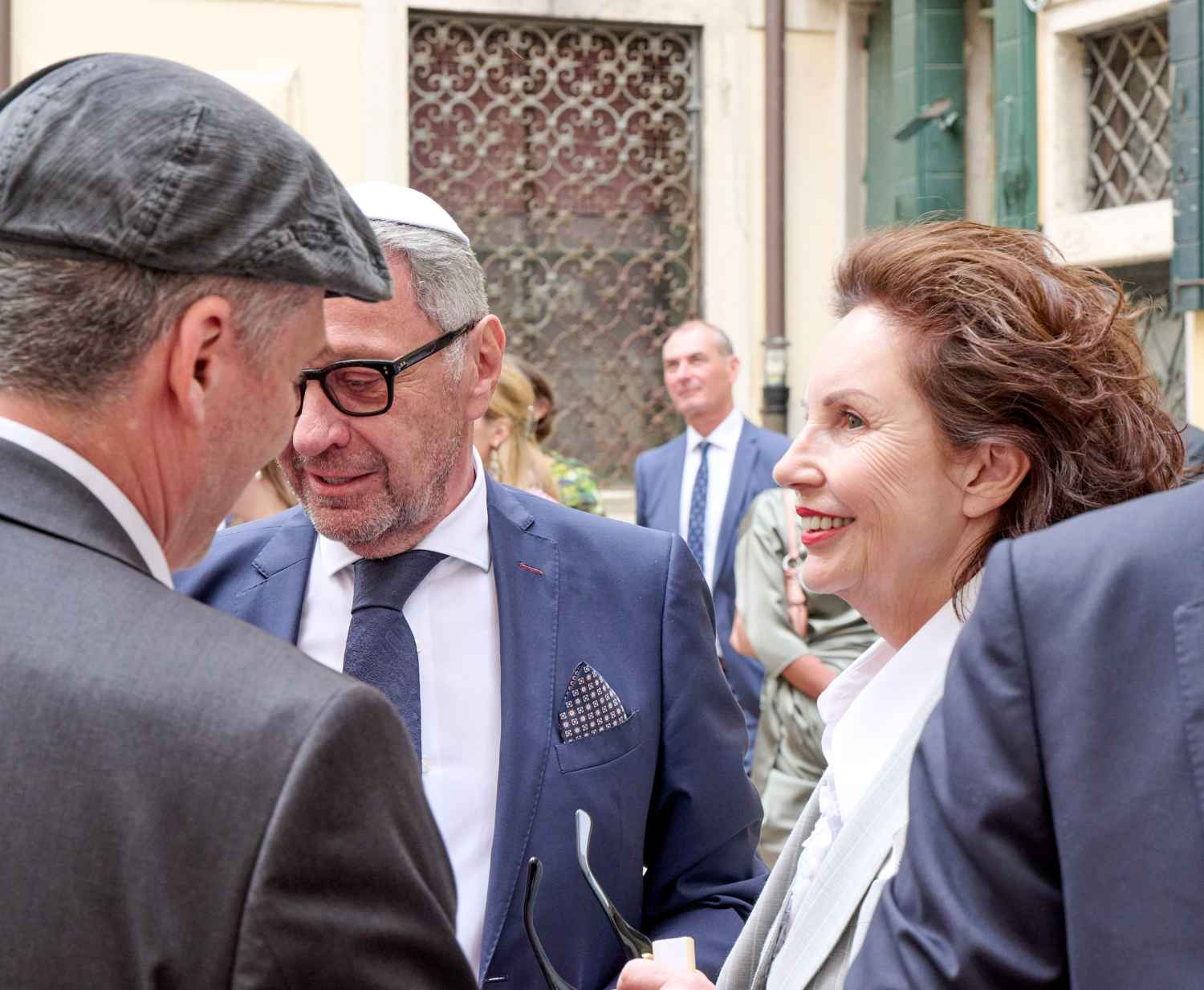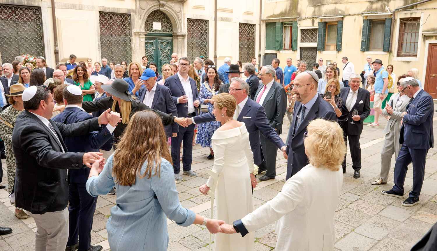 Anita Ammersfeld und Erwin Javor wurden nach 33 Jahren standesamtlicher Ehe in der Spanischen Synagoge im Venediger Ghetto nun auch noch „richtig“ getraut. Das Fest danach fand im eleganten Sala Stucchi im Hotel Excelsior am Lido statt. Eine bunte wie hochkarätige und gut gelaunte Gästeschar aus Israel, Österreich, den USA, Kanada und der Schweiz feierte das Paar ausgelassen, fröhlich und herzlich bis in die frühen Morgenstunden.