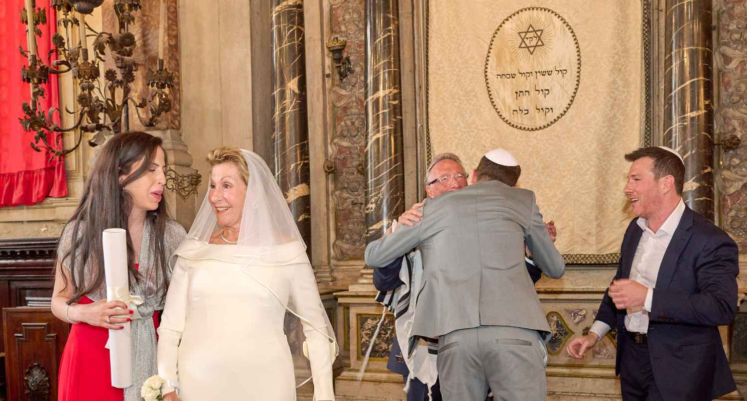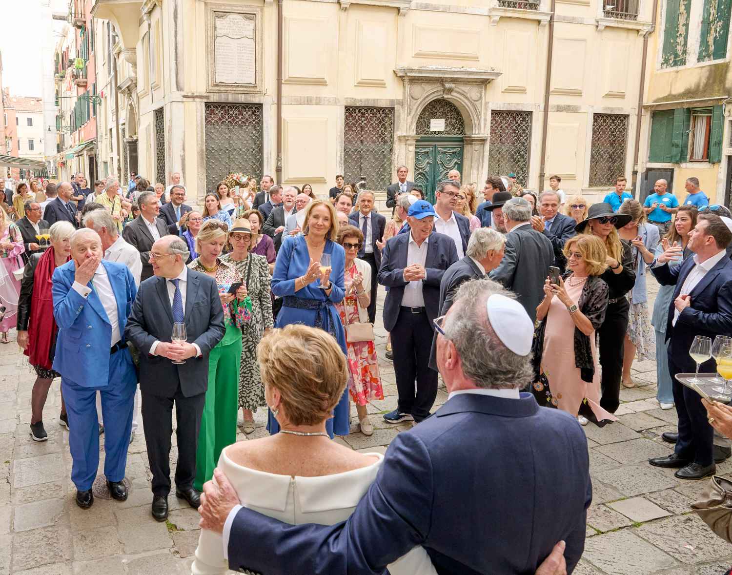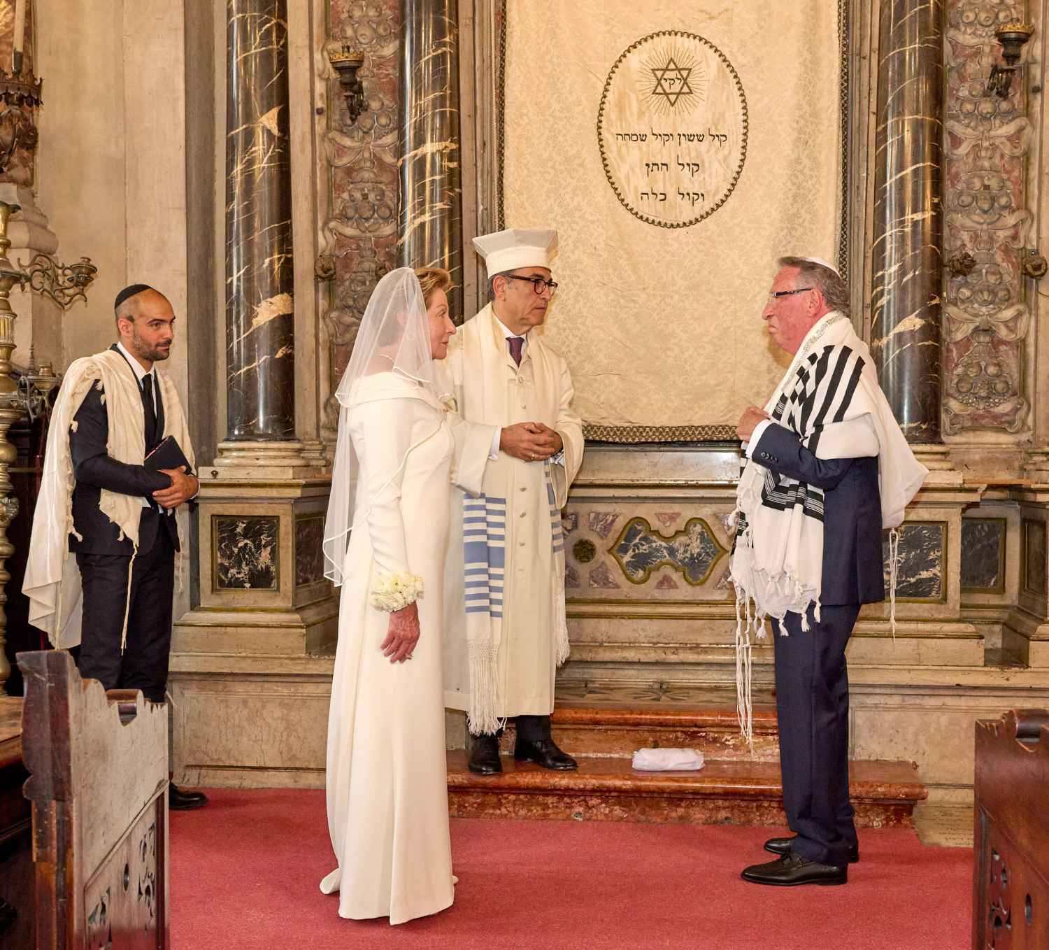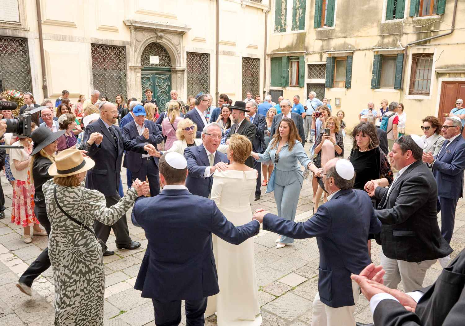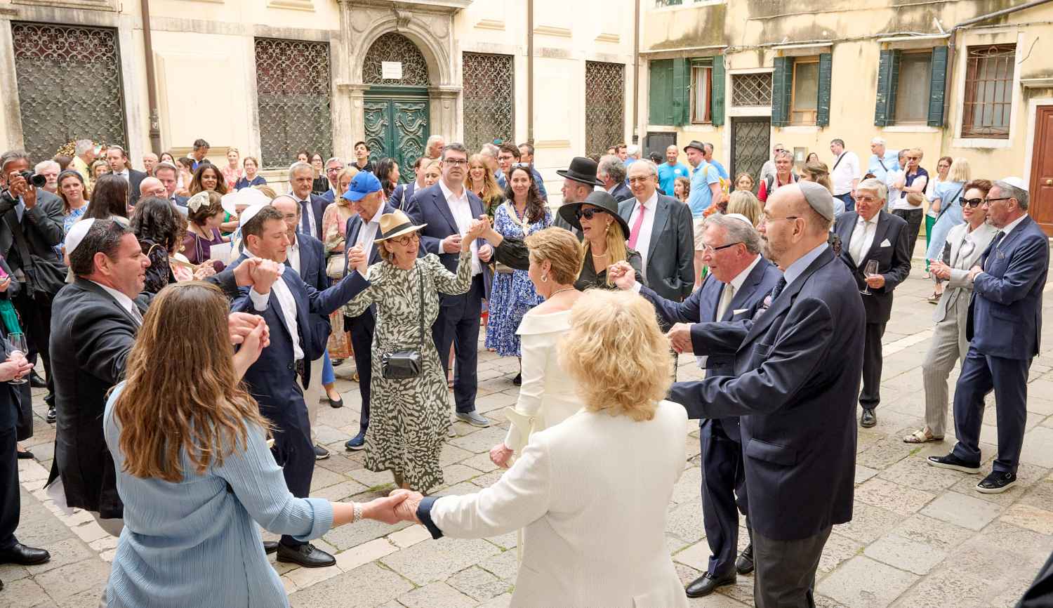 Anita Ammersfeld und Erwin Javor wurden nach 33 Jahren standesamtlicher Ehe in der Spanischen Synagoge im Venediger Ghetto nun auch noch „richtig“ getraut. Das Fest danach fand im eleganten Sala Stucchi im Hotel Excelsior am Lido statt. Eine bunte wie hochkarätige und gut gelaunte Gästeschar aus Israel, Österreich, den USA, Kanada und der Schweiz feierte das Paar ausgelassen, fröhlich und herzlich bis in die frühen Morgenstunden.