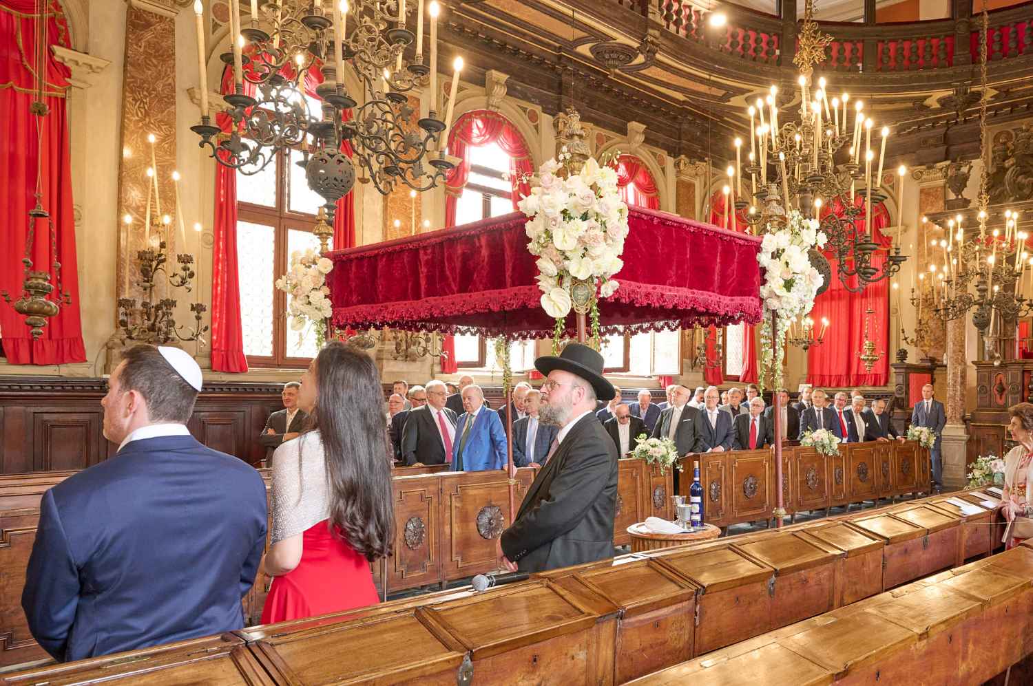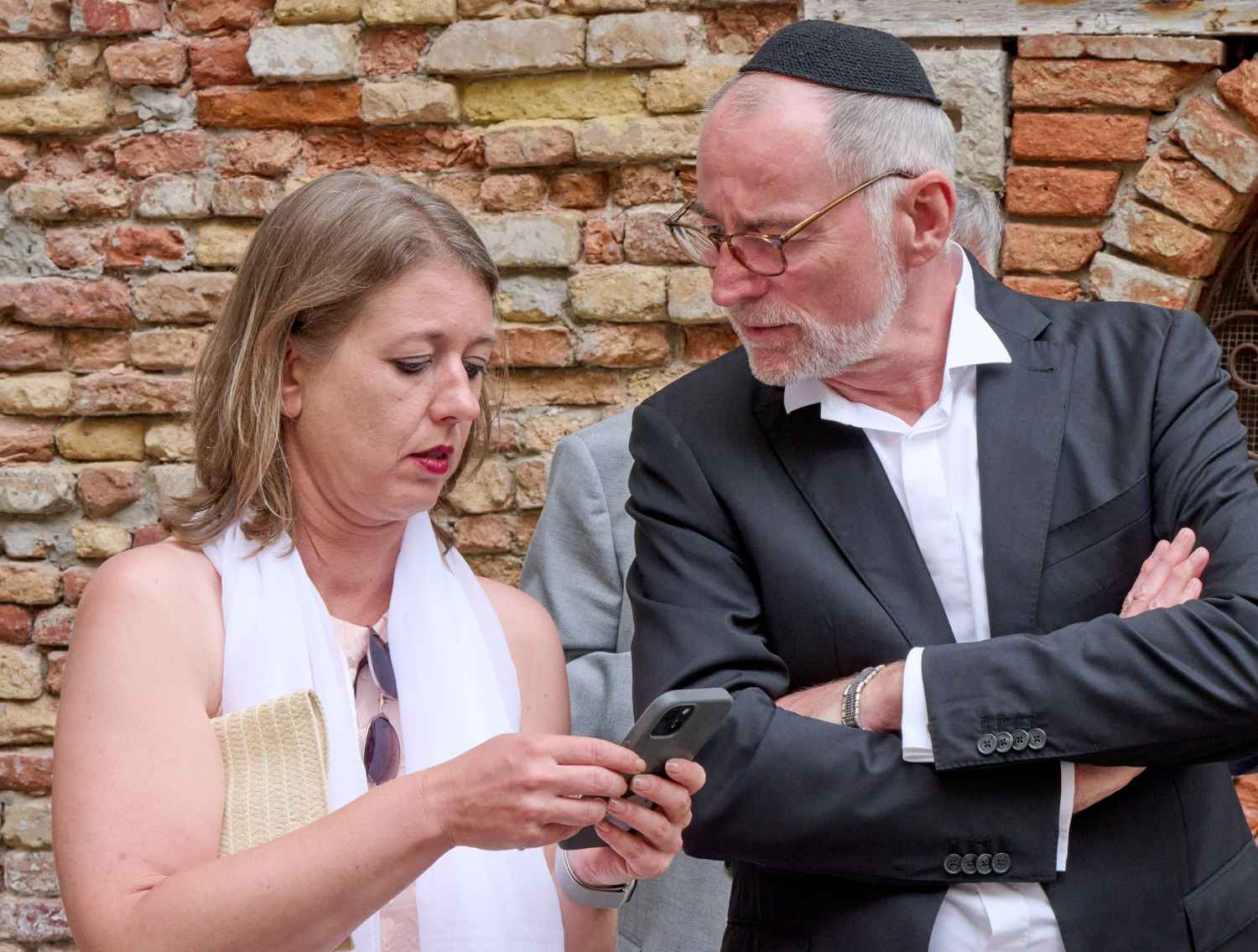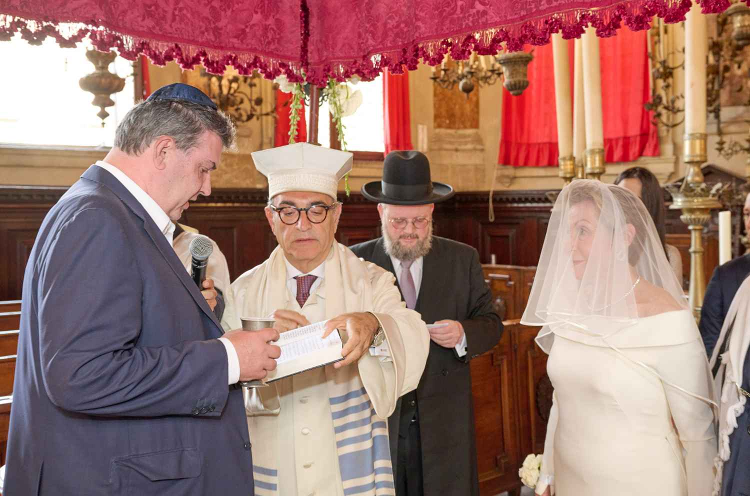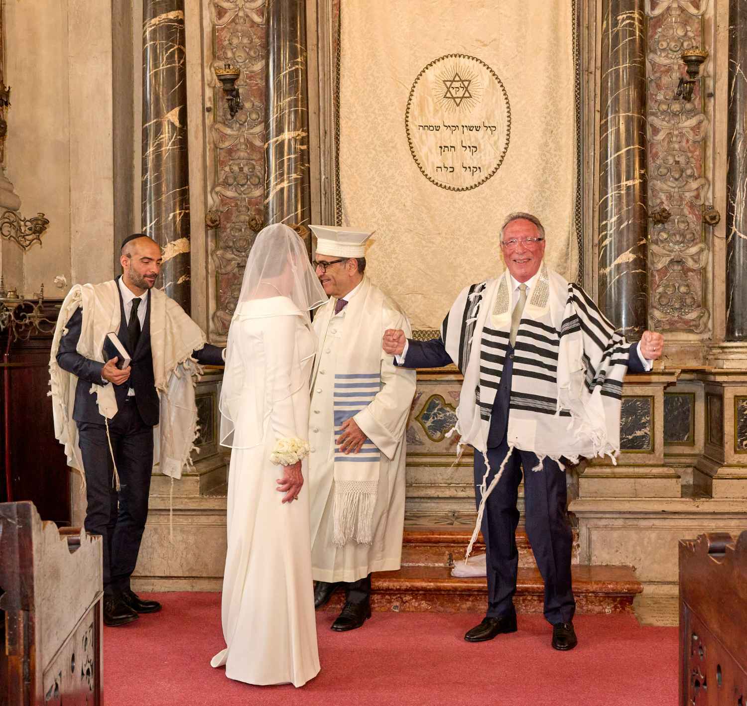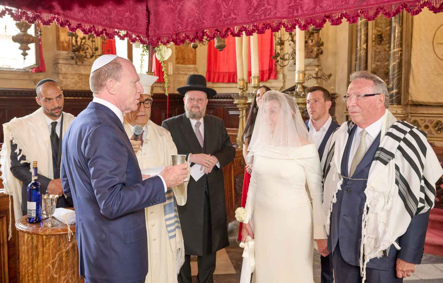 Anita Ammersfeld und Erwin Javor wurden nach 33 Jahren standesamtlicher Ehe in der Spanischen Synagoge im Venediger Ghetto nun auch noch „richtig“ getraut. Das Fest danach fand im eleganten Sala Stucchi im Hotel Excelsior am Lido statt. Eine bunte wie hochkarätige und gut gelaunte Gästeschar aus Israel, Österreich, den USA, Kanada und der Schweiz feierte das Paar ausgelassen, fröhlich und herzlich bis in die frühen Morgenstunden.