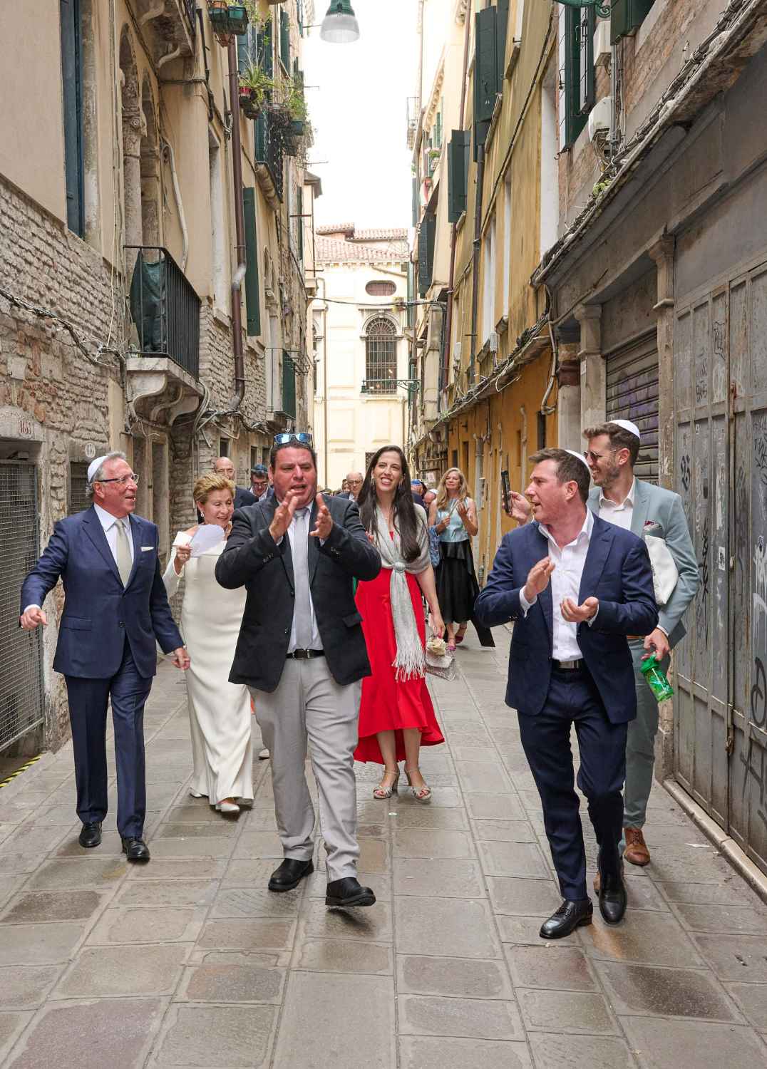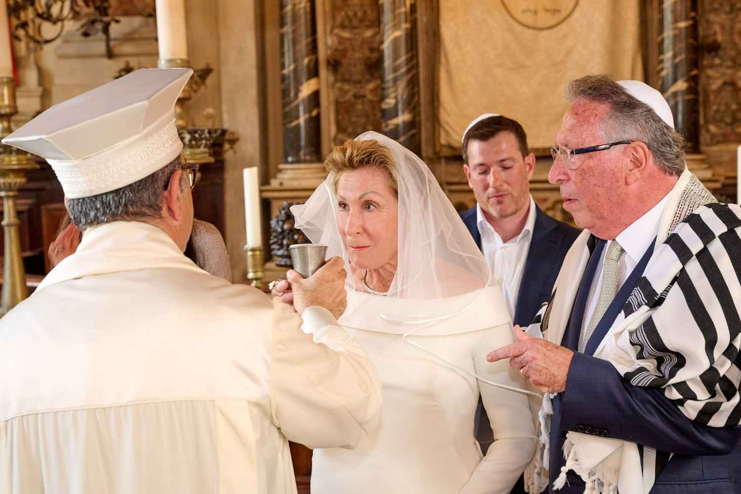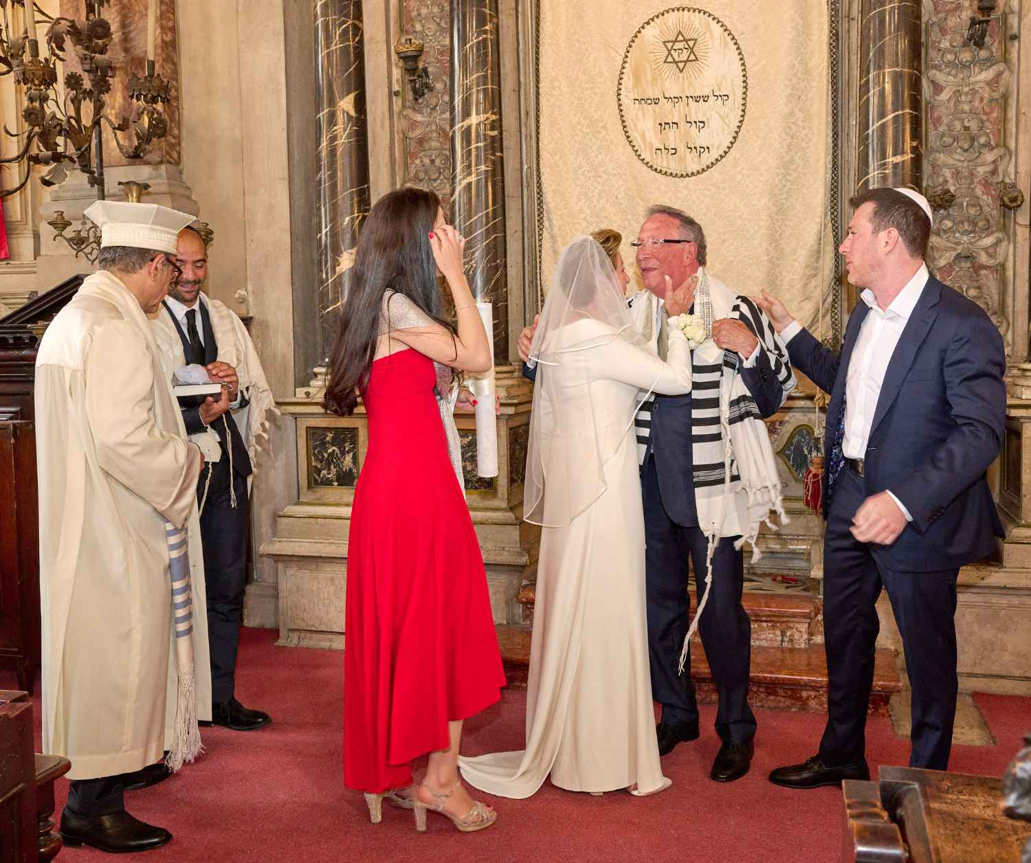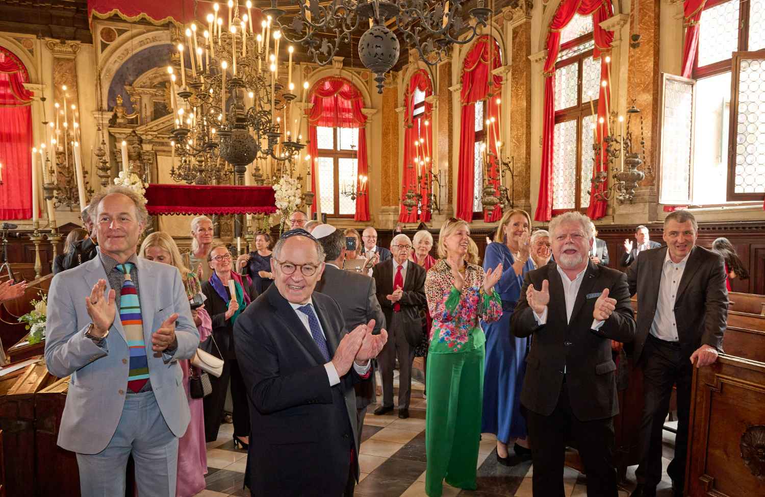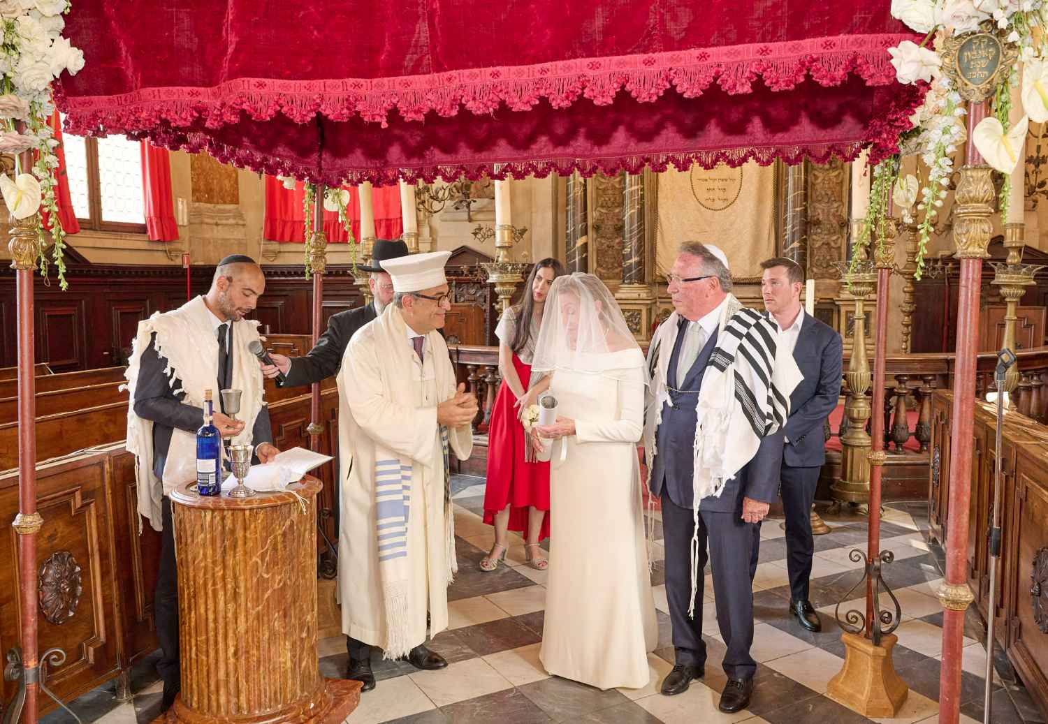 Anita Ammersfeld und Erwin Javor wurden nach 33 Jahren standesamtlicher Ehe in der Spanischen Synagoge im Venediger Ghetto nun auch noch „richtig“ getraut. Das Fest danach fand im eleganten Sala Stucchi im Hotel Excelsior am Lido statt. Eine bunte wie hochkarätige und gut gelaunte Gästeschar aus Israel, Österreich, den USA, Kanada und der Schweiz feierte das Paar ausgelassen, fröhlich und herzlich bis in die frühen Morgenstunden.