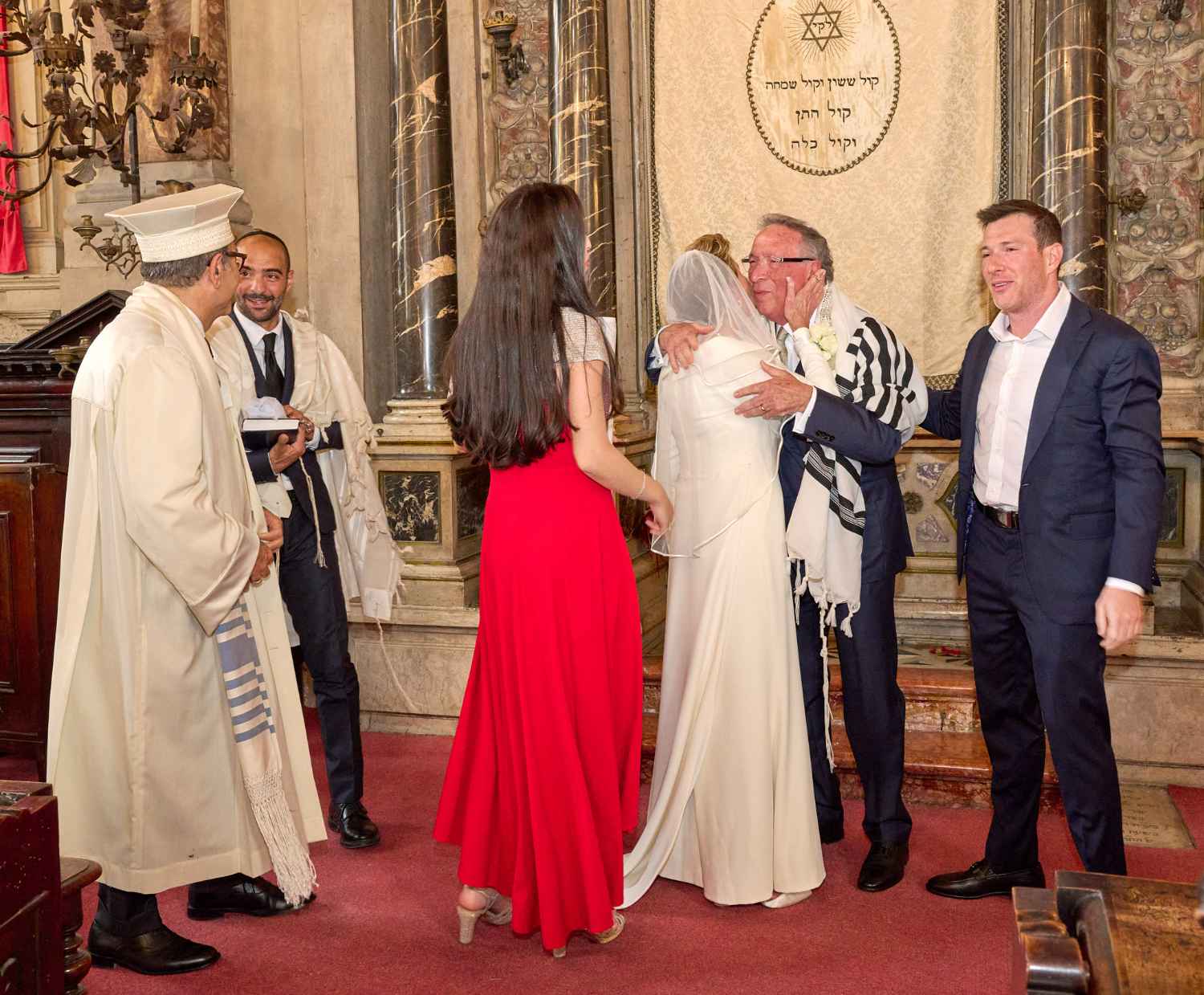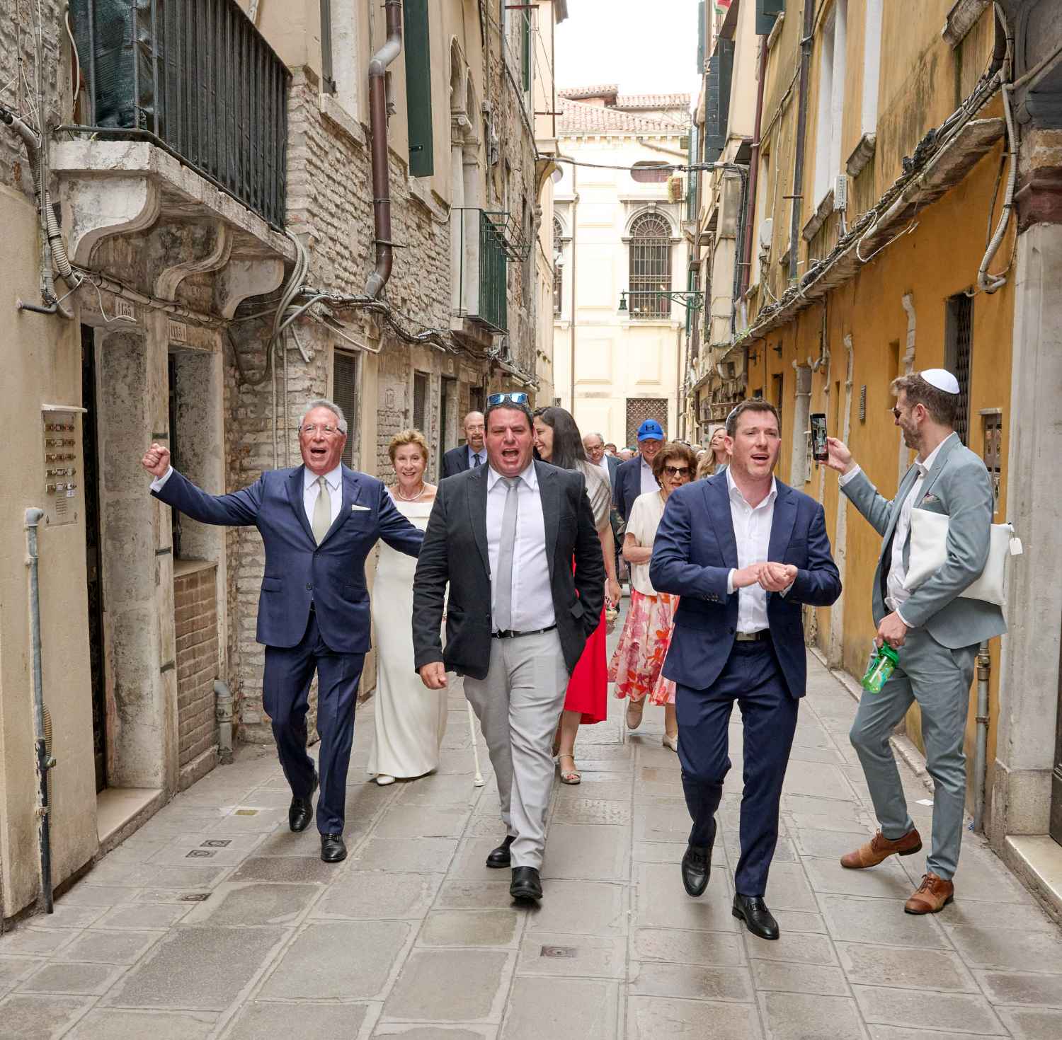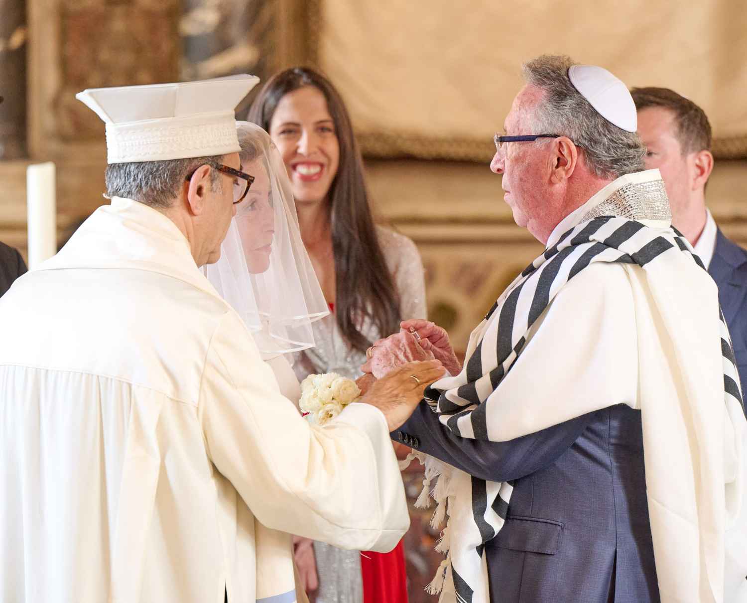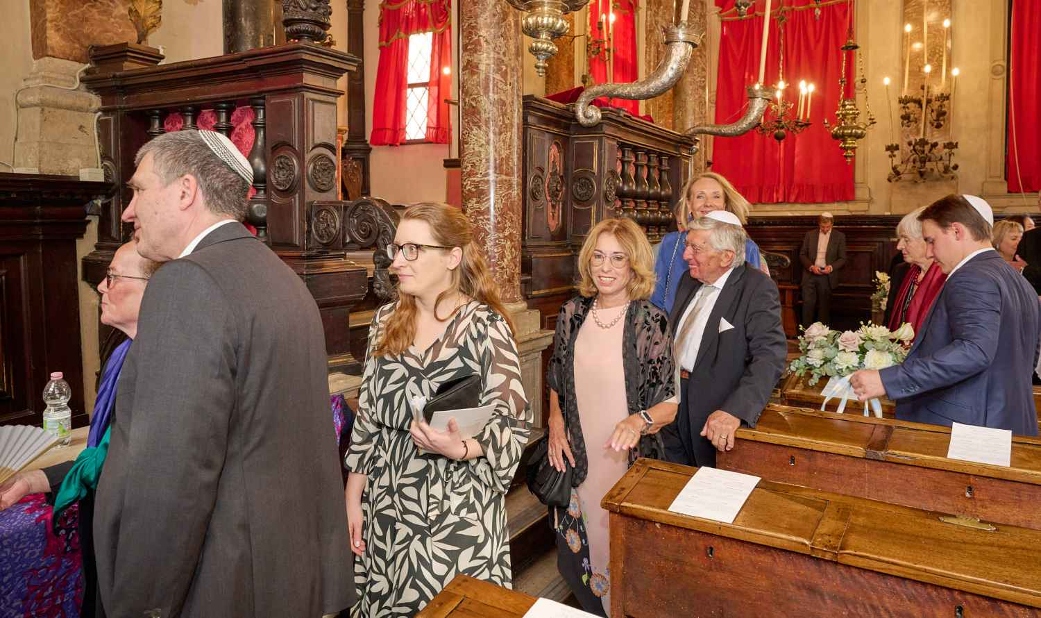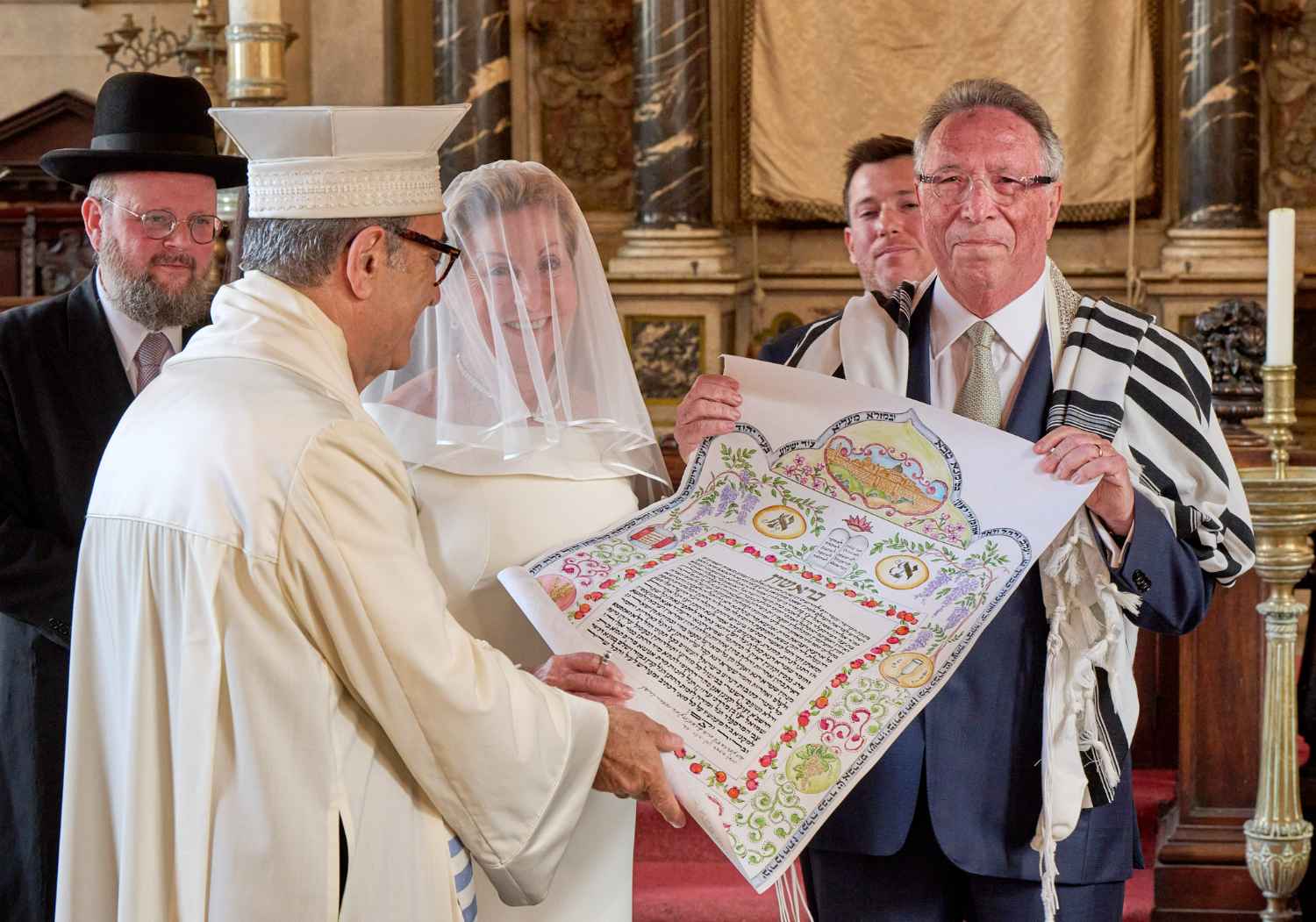 Anita Ammersfeld und Erwin Javor wurden nach 33 Jahren standesamtlicher Ehe in der Spanischen Synagoge im Venediger Ghetto nun auch noch „richtig“ getraut. Das Fest danach fand im eleganten Sala Stucchi im Hotel Excelsior am Lido statt. Eine bunte wie hochkarätige und gut gelaunte Gästeschar aus Israel, Österreich, den USA, Kanada und der Schweiz feierte das Paar ausgelassen, fröhlich und herzlich bis in die frühen Morgenstunden.